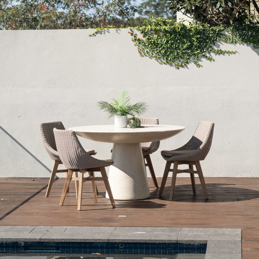 Yori Outdoor Organic Round Dining Table – Off White
