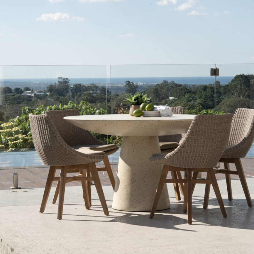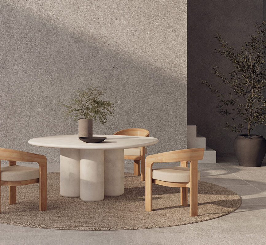 Yori Outdoor Organic Round Dining Table – Concrete Grey