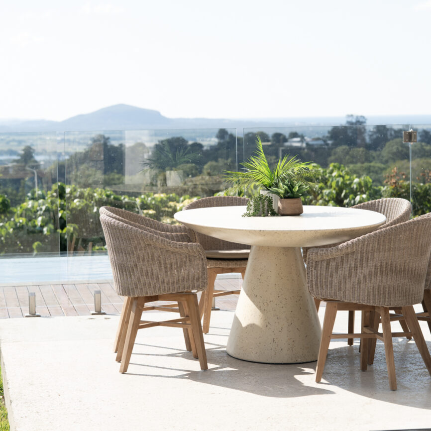 Sculptural, durable, and beautifully refined, the Clara Dining Table is where timeless design meets everyday functionality. Crafted from resilient stone resin and finished in a soft quartz hue, its gracefully curved form and minimalist silhouette offer a sense of quiet sophistication. Designed to shine in both indoor and outdoor settings, the Clara is resistant to the elements—making it just as suited to alfresco dining as it is to a contemporary interior. Whether hosting long lunches or casual dinners, the Clara Dining Table brings effortless elegance to any space.